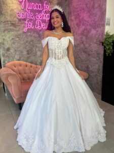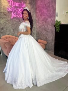 Cada vestido nasce das mãos talentosas da estilista Gerlaine Brito, que conduz cada etapa de criação ao lado de sua equipe com olhar minucioso. As peças são feitas para pessoas que valorizam elegância, conforto e leveza — seja para viver um grande sonho ou celebrar um momento inesquecível.