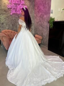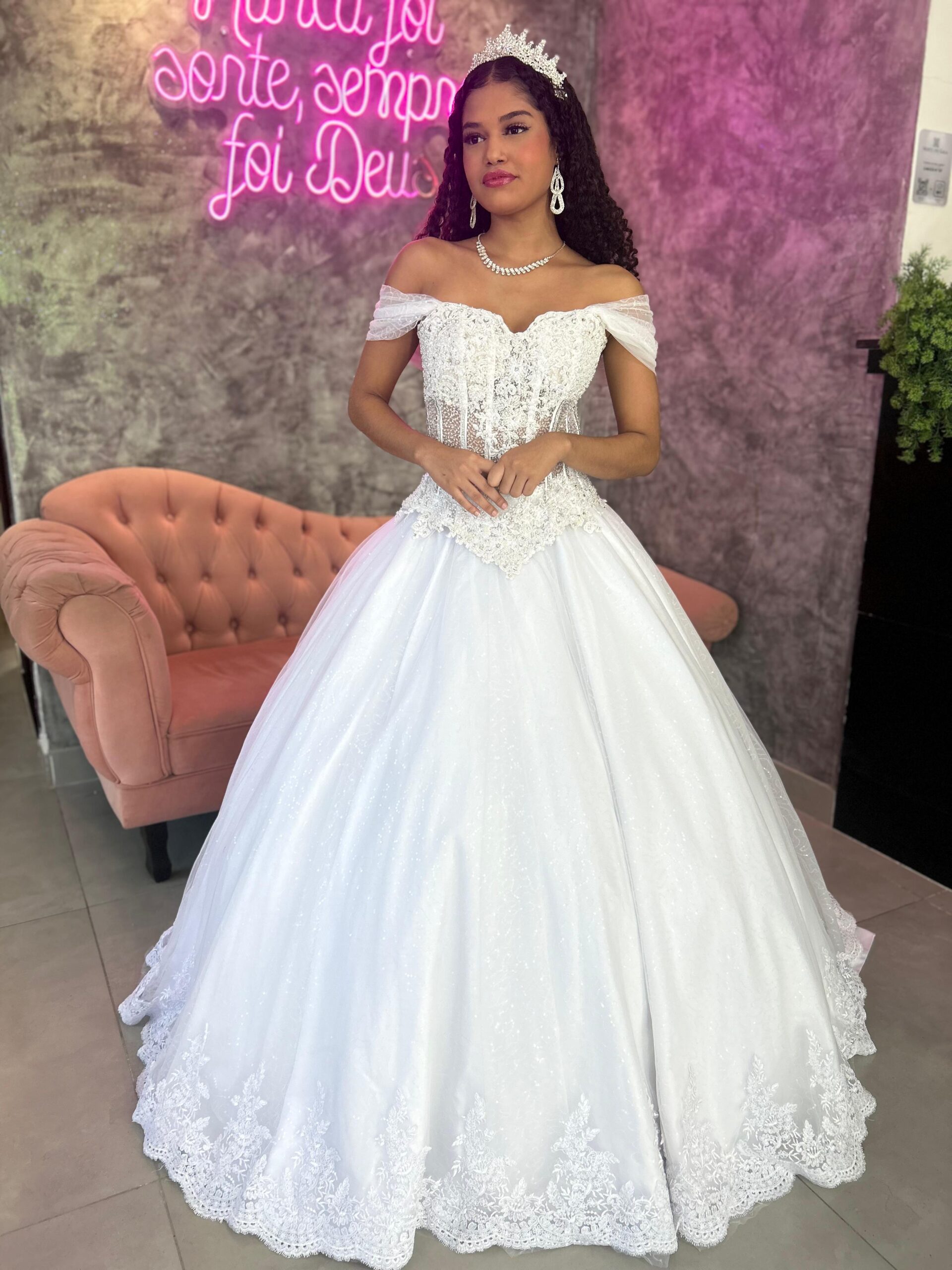Vestido de Noiva Longo Branco com Detalhes em Renda