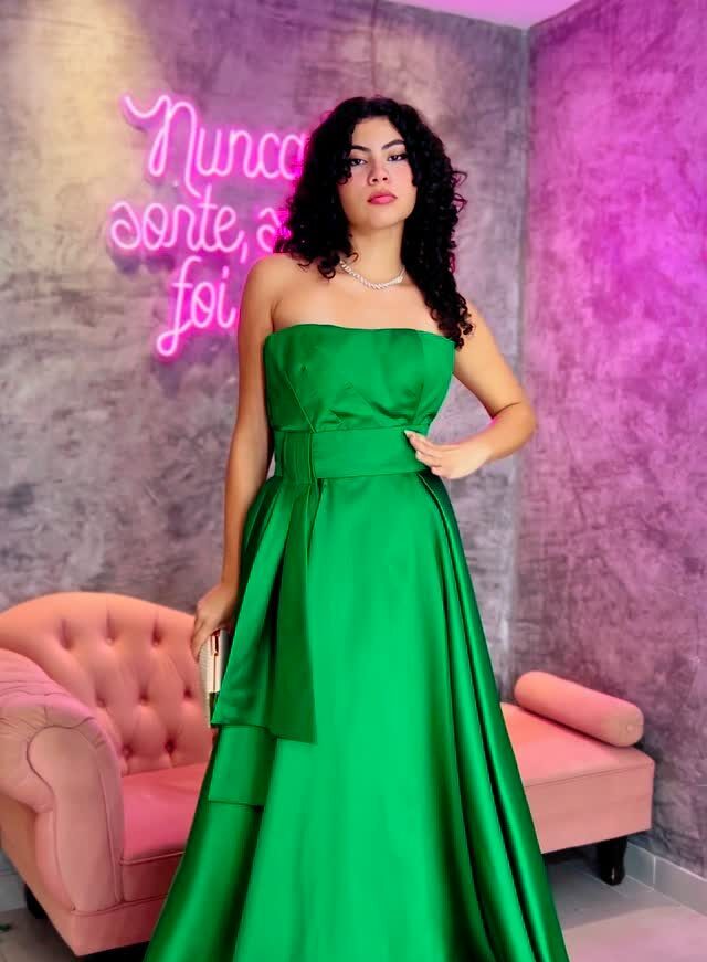 Imponente e encantador, o vestido Deslumbrante Verde é feito em organza brilhante com leve transparência, revelando um jogo sutil de luz e movimento a cada passo. O decote reto e as alças finas trazem equilíbrio à saia volumosa, marcada por camadas esculpidas que parecem flutuar. A tonalidade esmeralda profunda torna o visual inesquecível. Ideal para formandas, madrinhas ou eventos especiais em que o protagonismo é essencial.