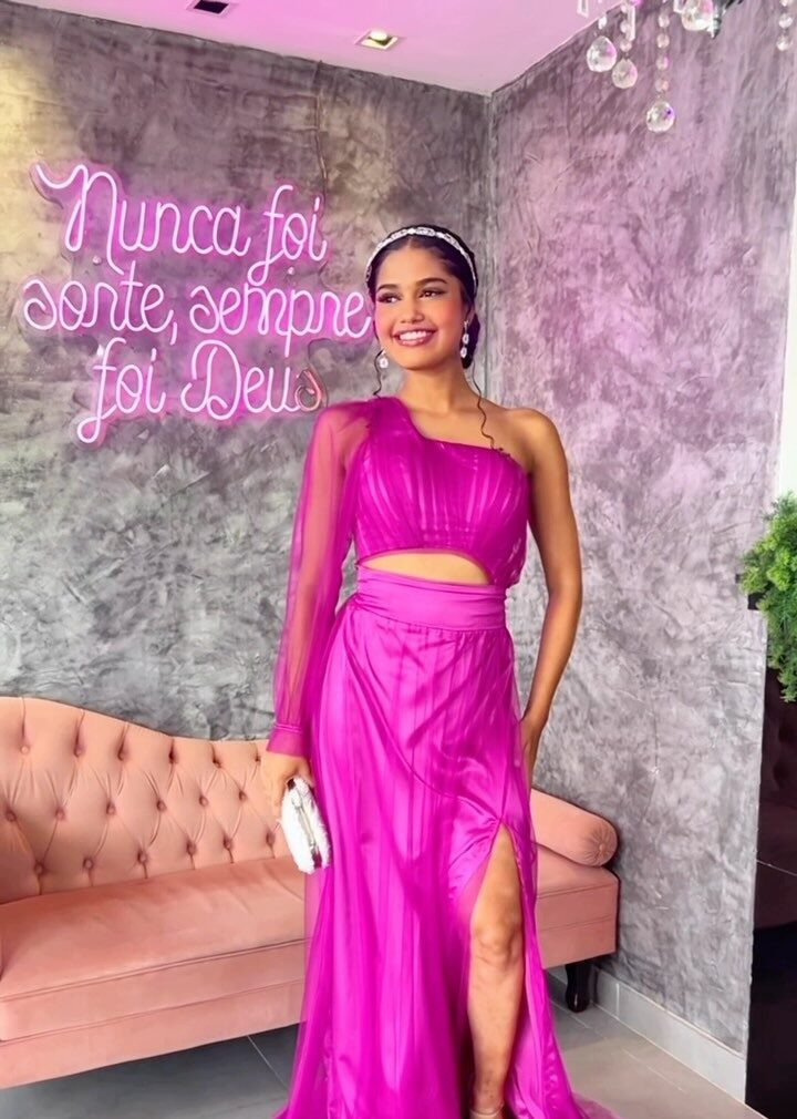 Ousado e sofisticado, o vestido Fúcsia é feito em cetim de seda com caimento impecável, que valoriza cada curva com elegância. A cor vibrante transmite personalidade e presença, ideal para quem deseja marcar a noite com estilo. O decote tomara que caia e a fenda lateral trazem equilíbrio entre sensualidade e sofisticação. Finalizado com um laço estruturado nas costas, é a escolha perfeita para quem ama protagonizar com elegância.