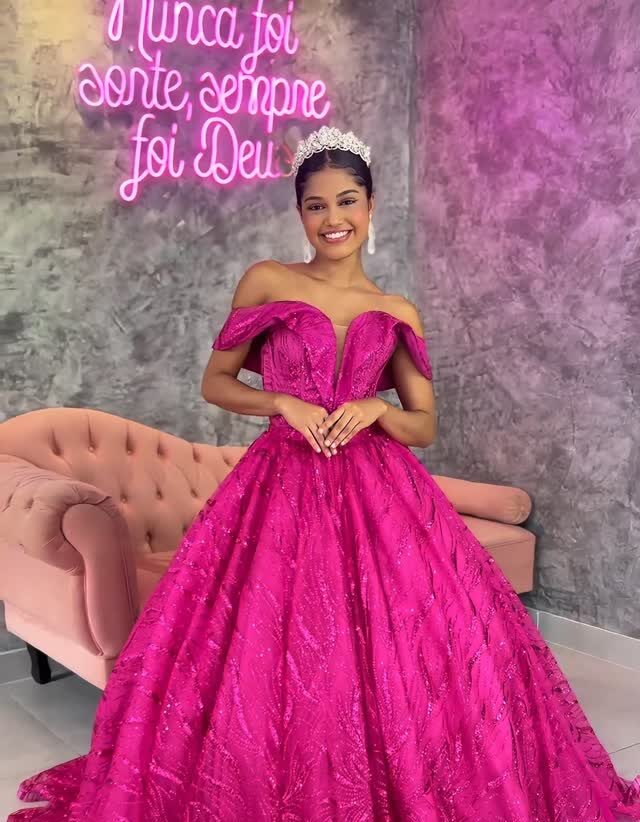 Inspirado nos contos encantados, este modelo é um verdadeiro sonho realizado. O vestido Debutante Princesa da Disney traz corpete bordado com cristais e pérolas, mangas bufantes removíveis e uma sobressaia em tule glitterizado que transforma o look com um toque de mágica. Ao retirar a saia, revela-se um vestido mais leve, perfeito para a valsa e a pista de dança. Um vestido 2 em 1 para brilhar como uma princesa — do início ao fim da noite.
